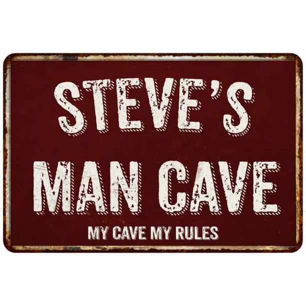 Steve S Man Cave Sign Garage Mancave Decor Accessories Signs Vintage Retro Rustic Tin Wall Art Name Home Beer Dads Gift 8 X 12 Matte Finish Metal 108120003230 Walmart Com